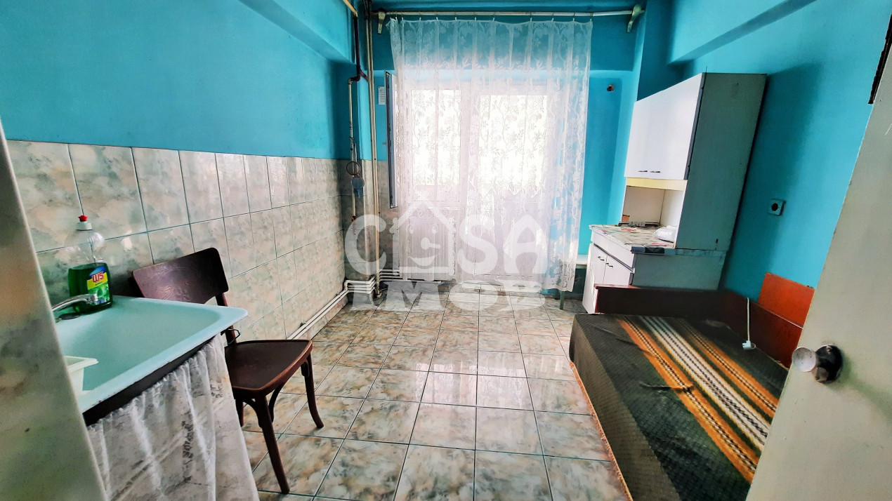 Compania imobiliara CASA IMOB va propune spre achizitie un apartament format din 2 camere si dependinte, cu un balcon mare de 5.7 mp, situat in centul municipiul Targoviste, zona MINISAT. Apartamentul are suprafata utila de 49 mp la care se adauga suprafata balconului de 5.7 mp rezultand un total de 54.7 mp utili, suprafata construita este de 58 mp si se afla la etajul 6 intr-un bloc cu 8 nivele. Apartamentul beneficiaza de centrala termica si geamuri din termopan pe structura PVC, are parchet din fag, gresie si faianta si usa metalica la intrare. Apartamentul necesita RENOVARE.