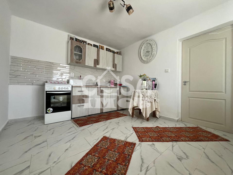 Locuința principală este o casă pe parter cu suprafață utilă de 50 mp, compartimentată în dormitor, hol, baie și două bucătării. Una dintre bucătării este nouă, aproape neutilizată, iar cea de-a doua este lipita de casă, cu acces separat si din exterior, fiind utilizată pentru gătit, un avantaj important pentru evitarea aburului și a mirosurilor în interiorul locuinței.