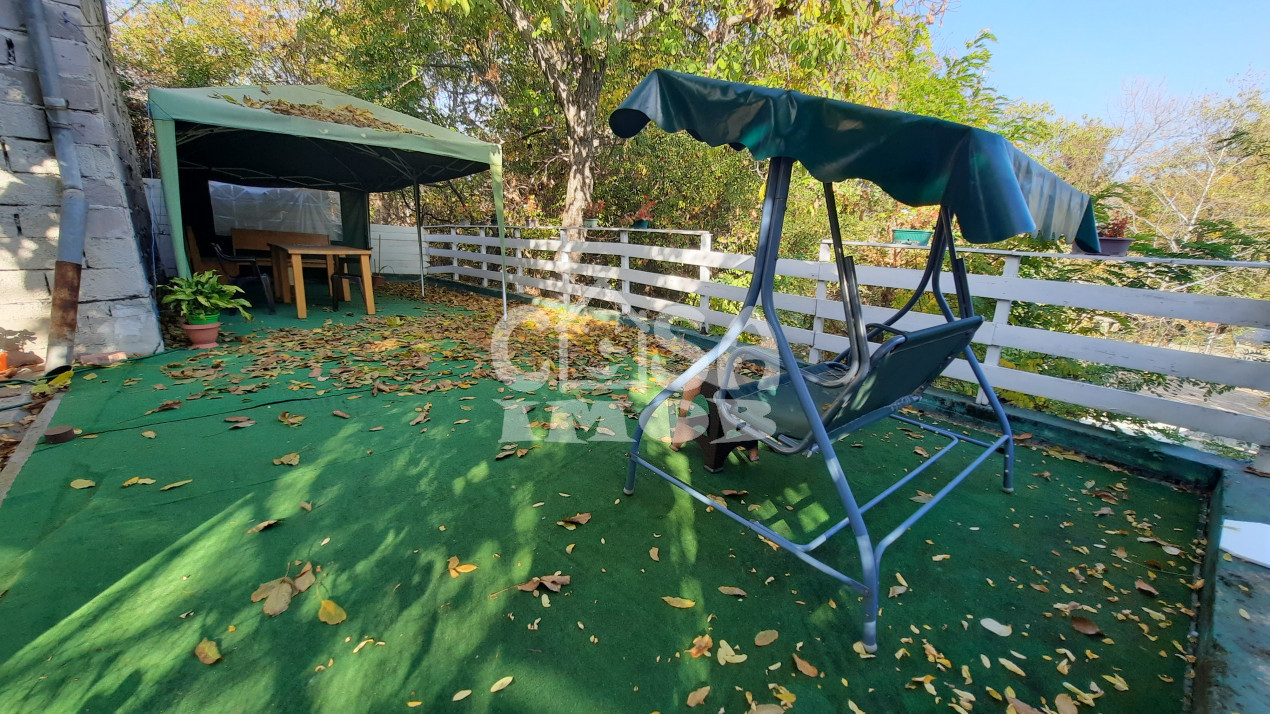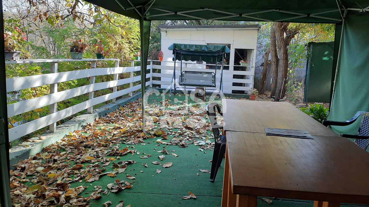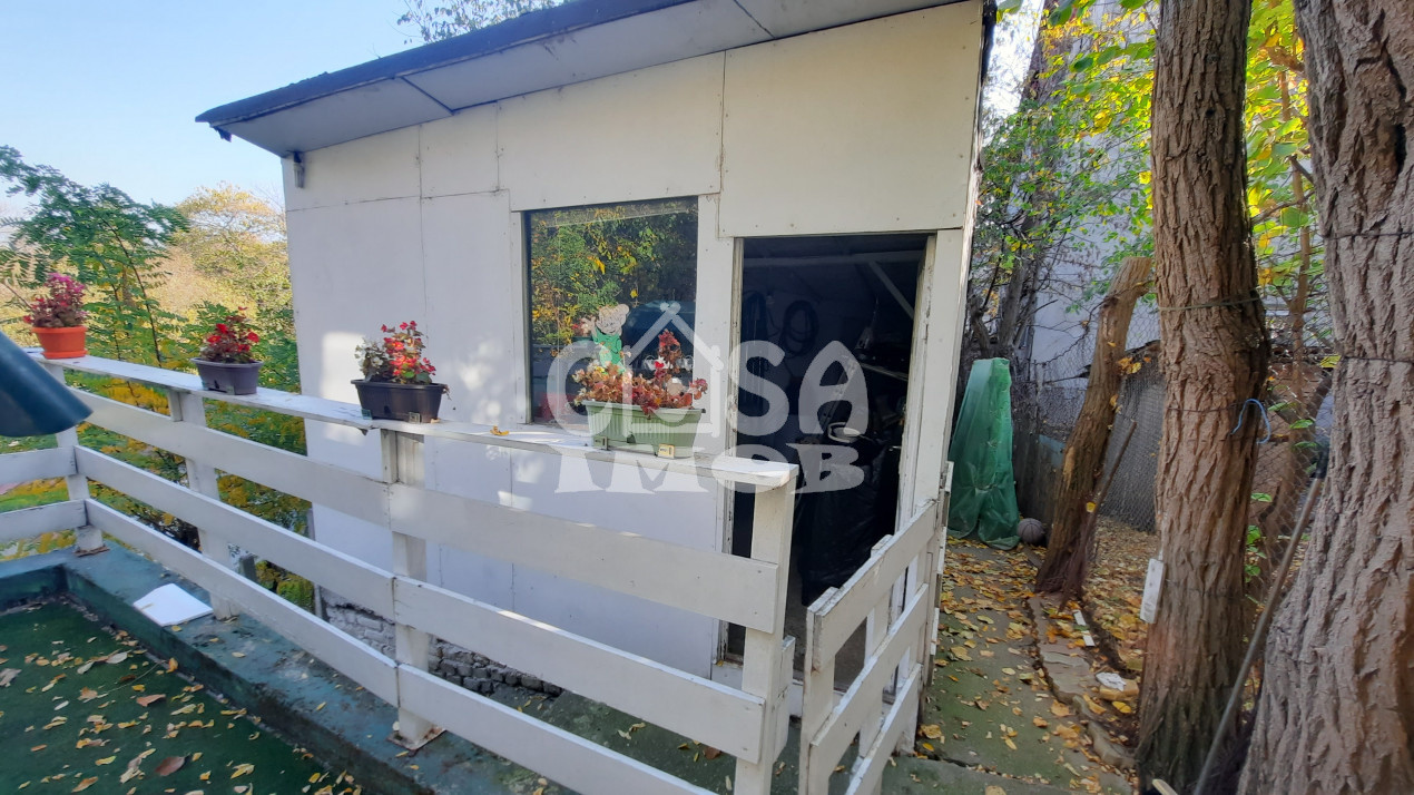 În spatele casei se află o terasă de 25 mp și o magazie construită din cărămidă pentru unelte de grădinărit și alte necesități.