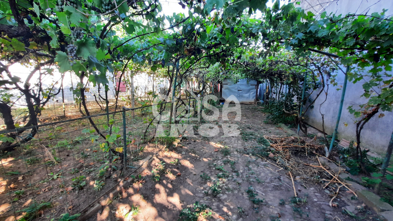 Terenul total de care dispune proprietatea este de 387 mp cu front la stradă de 17.85 metri, asa cum v-am explicat și mai sus. Având în vedere amplasarea casei care are o amprenta la sol de 90 mp cât și a unei anexe de 15 mp, mai rămâne o curte liberă de cca. 282 mp, teren pe care mai găsim o boltă cu viță de vie, diverse plante ornamentale, copaci, dar și un garaj de cca. 17 mp cu intrare de pe o poartă separată.