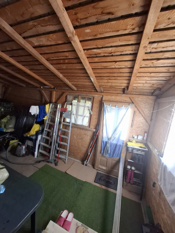 În partea din spate a casei se află 1 camera tip magazie de unelte, o anexă și o terasă. În curte există și un garaj (în suprafață de 37 mp) neacoperit, pentru 2 mașini.