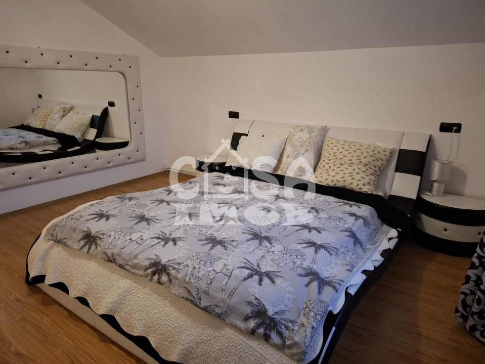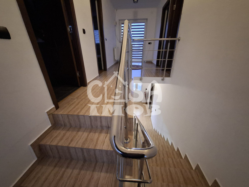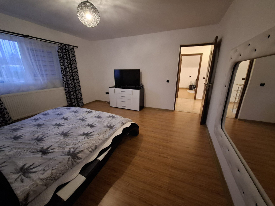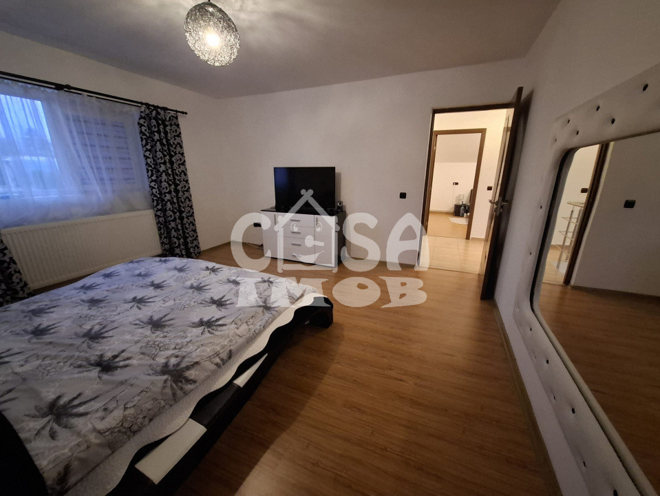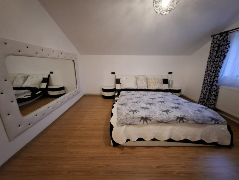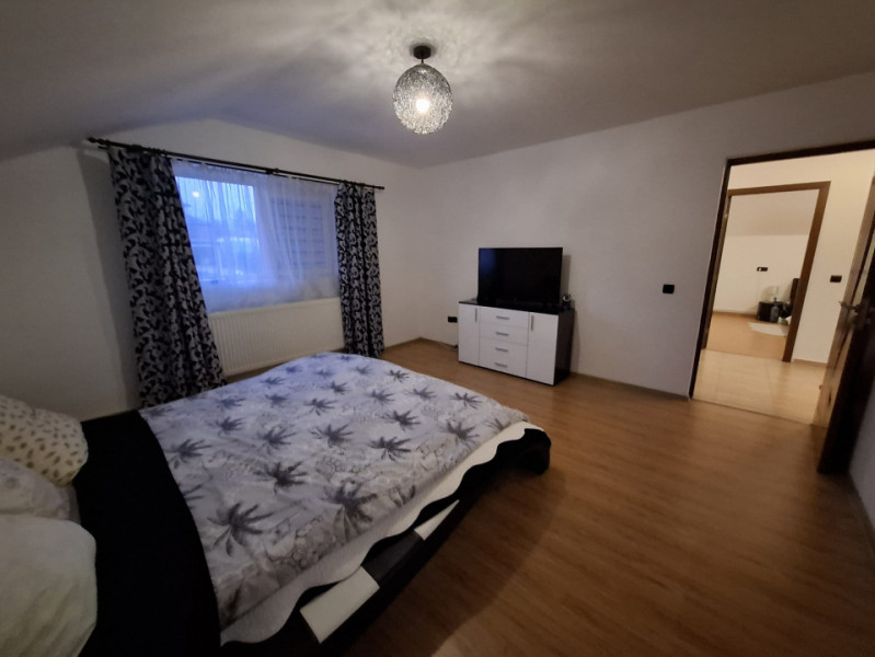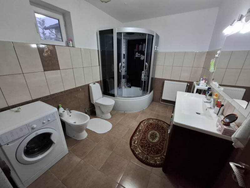Locuința oferă o suprafață utilă totală de 142 mp, distribuită eficient pe două niveluri. Parterul este dedicat zonei de zi, cu un living primitor, o bucătărie complet utilată și o baie modernă. Mansarda este compartimentată inteligent, cu trei dormitoare luminoase și o baie, oferind intimitate și spațiu pentru întreaga familie.