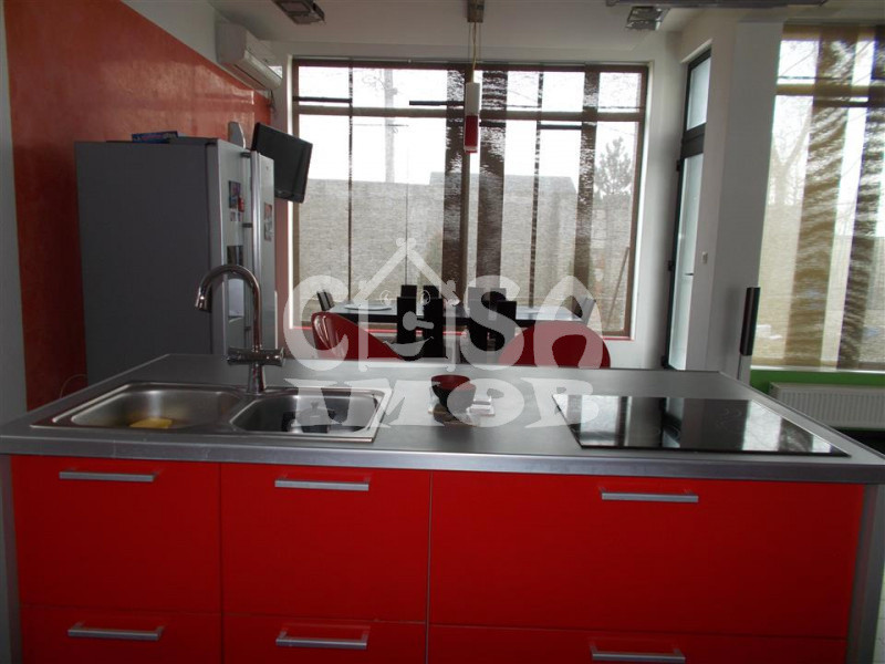 PARTER - 1 living spatios open space cu bucataria (vezi foto) - 1 baie cu cabina de dus - 1 birou - 1 hol - 1 camera centrala - casa scarii.