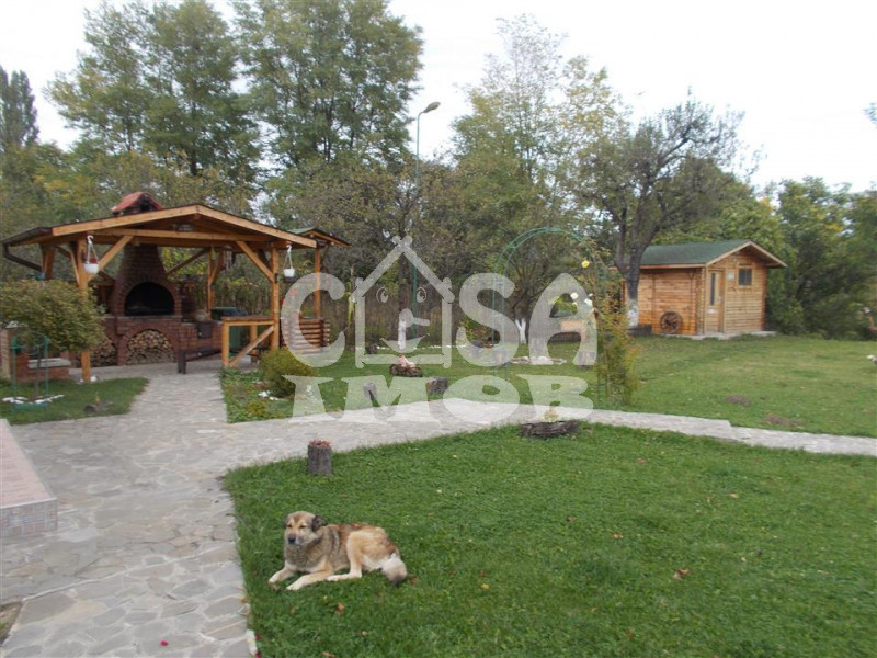 Terenul pe care se află această vilă deosebită este în suprafață de 2.000 mp și este împrejmuit cu gard din plasă și fier forjat. Accesul pe teren cu mașina se face pe o alee betonată și luminată cu stâlpi de curent. Terenul este amenajat cu mult bun-gust, fiind împărțit pe mai multe destinații: în partea stângă a casei este amenajat un foisor cu sobă pe lemne și barbeque, în prelungire, la o distanță de 20 metri se află o magazine de unelte complet echipată (mașină de tuns iarba, sistemul de udare a grădinii și ustensile de grădinărit), în partea dreaptă a terasei se află un loc de relaxare, cu leagăn numit simbolic ”PIPA TURCULUI”, iar în capătul terenului este amenajat un loc mai retras pentru alte activități de agrement. Pe teren mai găsim pomi fructiferi, o boltă de viță-de-vie și multe ronduri de flori amenajate foarte frumos.