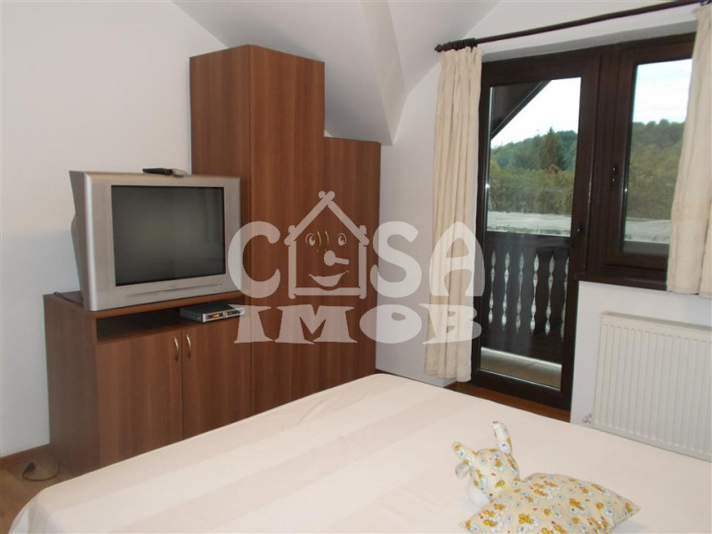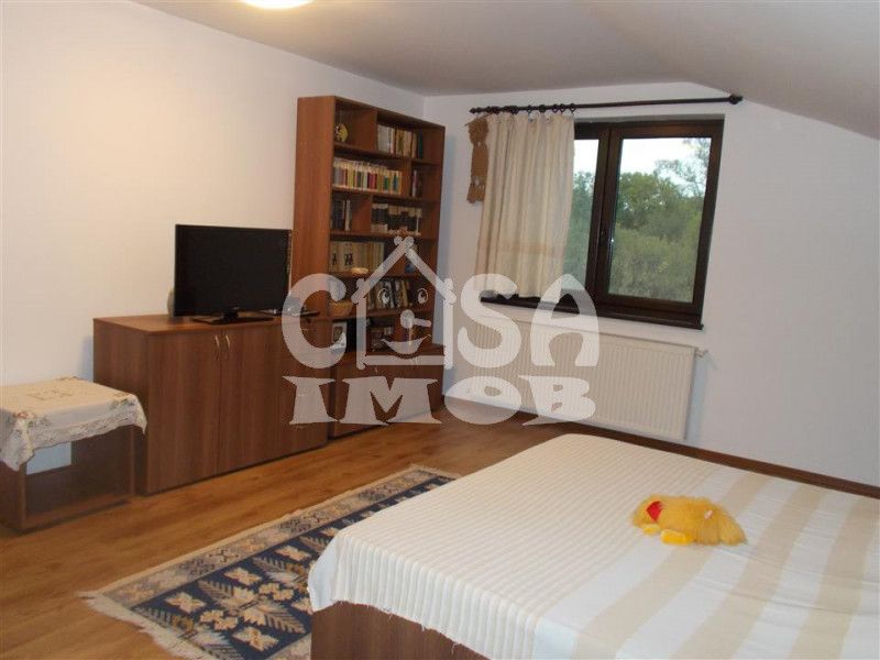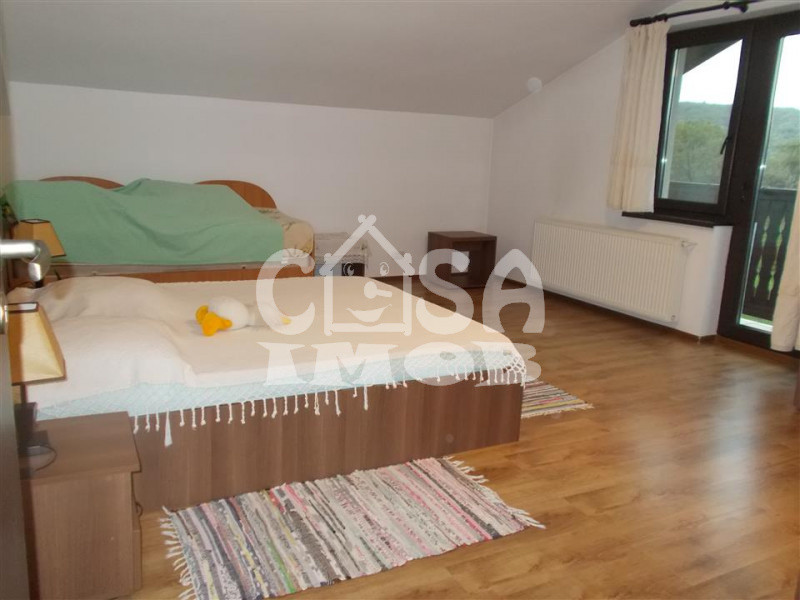 LA ETAJ - camera tehnică/debara (in care este montată aparatura specială pentru supravegherea video a casei), 3 dormitoare (din care 2 cu balcon, de unde beneficiem de o priveliște de vis) și un altul fara balcon; doua bai care deservesc celelalte 3 dormitoare și un hol.