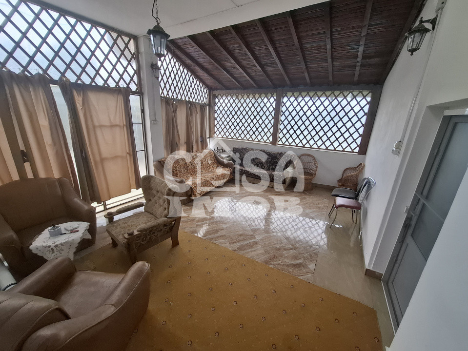 Casa este foarte bine întreținută, are centrală termică pe gaz, parchet din stejar în camere, gresie și faianță, uși din PVC cu geam termopan la interior si ușă metalică la intrarea în casă. În continuarea casei, cu ieșire din bucătărie, mai există o terasă acoperită utilizată ca loc de reuniuni familiale, plus o altă cameră folosită ca bucătărie de vară.